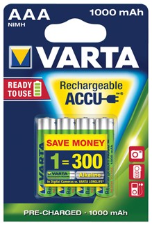 Varta Ready 2 Use is een geheel nieuw ontwikkelde oplaadbare batterij met als grote voordeel dat de batterijen niet hoeven worden opgeladen voor het eerste gebruik.