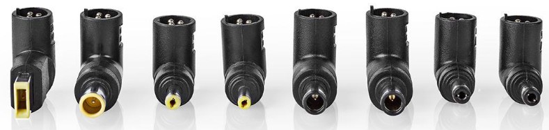 De 8 verwisselbare (haakse) power tips en het selecteerbare uitgangsvoltage maken deze adapter geschikt voor bijna elke notebook.