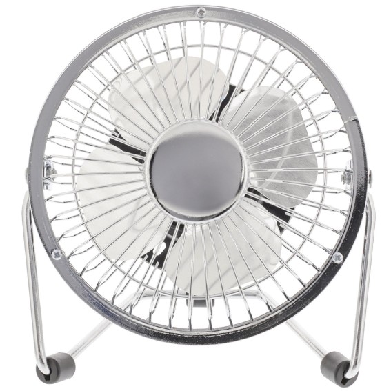 Specificatie: • USB gevoed • USB naar DC kabel, 1.2 meter • DC ingang: 5.5 x 2.1mm, 0.5A • Metalen rooster, Ø 13cm • 4 bladen, Ø 10cm, Aluminium • Aan/Uit knop op de achterkant • Kabel lengte: 1.2m • Gewicht: 288gr