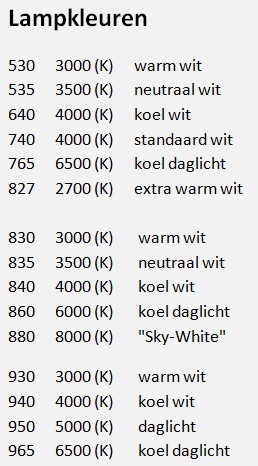 Hieronder een weergave welke kleurcode bij welke kleurtemperatuur hoort.