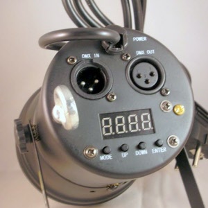 PAR36 pinspot met 60x 10mm LED's in 3 kleuren.Voor eventuele aansturing met een DMX-signaal kan een DMX-512 controler worden gebruikt.- 60 Heldere long-life 10mm LED's   (18x rood, 21x groen, 21x blauw)- DMX, muziekgestuurd of auto-mode- 4 DMX-kanalen: Rood, groen, blauw,