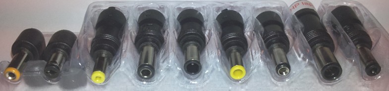 Afmetingen van de power tips: • 6.3 x 3.0 x 14mm • 5.0 x 1.0 x 12.5mm, middenpin • 7.9 x 0.9 x 11.5mm, middenpin • 4.75 x 1.7 x 10mm • 7.4 x 0.6 x 12.5mm, middenpin • 6.5 x 1.4 x 12mm, middenpin • 5.5 x 1.7 x 12mm • 5.5 x 2.5 x 12mm