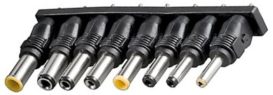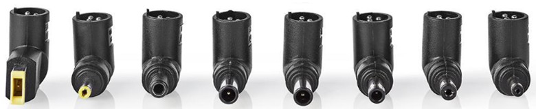 De 8 verwisselbare (haakse) power tips en het selecteerbare uitgangsvoltage maken deze adapter geschikt voor bijna elke notebook.