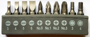 -Bithouder: bestaat uit een hoogwaardige legering van chroom en staal, warmtebehandeld, de bitjes zitten geklemd in de houder. (Dus de bitjes worden niet magnetisch)