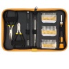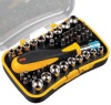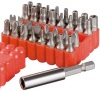 Specificatie: Bits (6-kant ¼ “ x 25mm): • 1/4" Doppen (9 st.): 4, 5, 6, 7, 8, 9, 10, 11, 12mm • 1/4" SAE Sockets (9 pcs): 5/32, 3/16, 1/4, 9/32, 5/16, 11/32, 3/8, 7/16, 1/2 • 1/4" Koppelstuk • 25mm Schroevendraaierbits: - Plat: 3, 4, 5, 6mm - Kruiskop Phillips: PH0, PH1, PH2, PH3 - Kruiskop Pozidriv: PZ0, PZ1, PZ2, PZ3 - Zeskant: 2, 3, 4, 5, 6, 8mm - Torx: T10, T15, T20, T25, T27, T30 - Vierkant: S0, S2, S2, S3 • Gewicht: 600g |