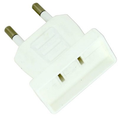 Met deze verloopstekker (reis stekker) kunnen bv. Amerikaanse stekkers in een Nederlands stopkontakt gestoken worden.