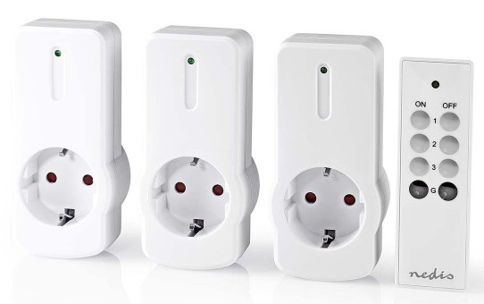 Set van een 4-kanaals afstandsbediening en 3  Schakelaars met randaarde stopcontacten.
