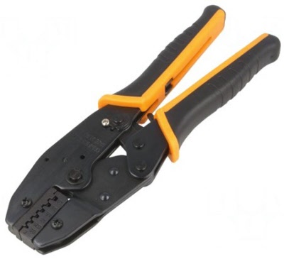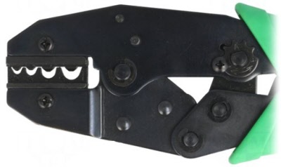 Professionele Krimptang met ratel en instelbare dwangsluiting.