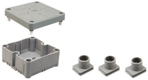 Specificatie: • Lasdoos: OBO T60 met 7 zelf afdichtende kabelingangen, buitenmaat: 114 x 114 x 57mm, binnenmaat: 100 x 100 x 48mm, voor kabeldiameters tot M25, temperatuurbestendigheid: -30° C tot +90°