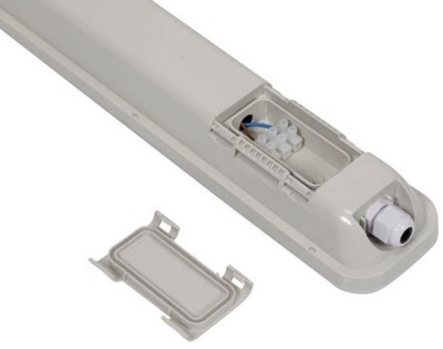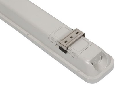 Dit waterdicht LED armatuur is binnen en buiten toepasbaar. Gemaakt van slagvast lichtgrijs Polycarbonaat met een opaal kap en een rubber afdichting. Inclusief RVS ophangbeugels.