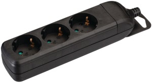 3-Weg Verdeeldoos, Zonder kabel, Zwart, Kinderslot.