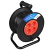 4-Weg Kabelhaspel, Open, 15 meter, Randaarde, Robuust, gegalvaniseerd stalen buis frame, Speciaal breekvast plastic.