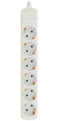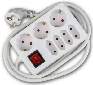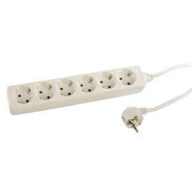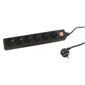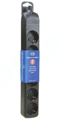 6-voudige geaarde stekkerdoos met overspanningsbeveiliging. (Surge protector) Snoer 1.5 meter, 3x1,5mm².