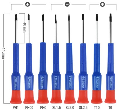 - 4x Phillips: PH000, PH00, PH0, PH1