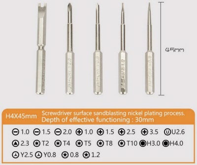 - 9x Torx: T4, T5, T6, T7, T8, T9, T10, T15, T20