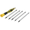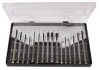 Specificatie: Bits (6-kant ¼ “ x 25mm): • 1/4" Doppen (9 st.): 4, 5, 6, 7, 8, 9, 10, 11, 12mm • 1/4" SAE Sockets (9 pcs): 5/32, 3/16, 1/4, 9/32, 5/16, 11/32, 3/8, 7/16, 1/2 • 1/4" Koppelstuk • 25mm Schroevendraaierbits: - Plat: 3, 4, 5, 6mm - Kruiskop Phillips: PH0, PH1, PH2, PH3 - Kruiskop Pozidriv: PZ0, PZ1, PZ2, PZ3 - Zeskant: 2, 3, 4, 5, 6, 8mm - Torx: T10, T15, T20, T25, T27, T30 - Vierkant: S0, S2, S2, S3 • Gewicht: 600g |