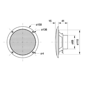 Spatwaterdichte 2-weg Inbouw Luidsprekerset met kunststof chassis en grille.