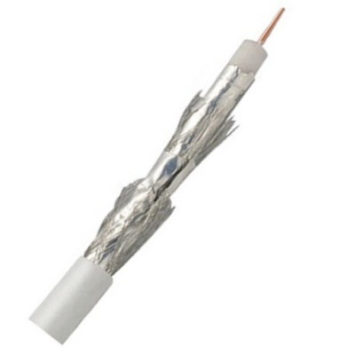 Hoogwaardige Coax Kabel voor Satellite, RG6, 120dB, 4-Voudige afscherming, Wit, per meter.