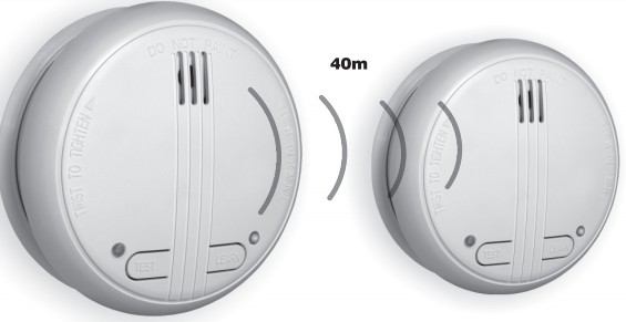 Wanneer één rookmelder rook detecteert, wordt er via een radiofrequentie een signaal uitgezonden om alle rookmelders te activeren. Uitgerust met testknop en waarschuwing bij lage batterijcapaciteit.