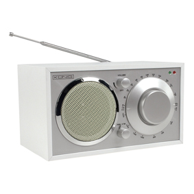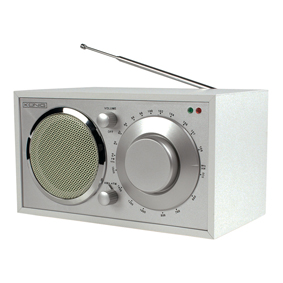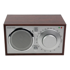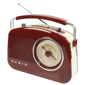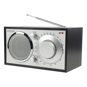 Deze AM/FM-radio in retrodesign heeft een grote frequentieschaal met de frequenties van grote steden.