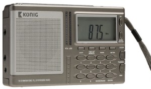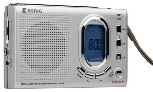 Ontvanger met wekker in reisformaat om overal radio te luisteren.