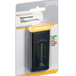 Compacte batterijtester Met LCD-scherm, Voor meer dan 12 verschillende accu- of batterij-types, Weergave batterijstatus in drie weergave-gebieden met 18 balkjes (5x zwak, 5x normaal, 8x goed) |